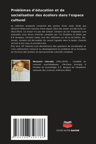 La collection proposée comprend des parties d'une vaste étude que Veniamin Fedorovich Litovsky mène depuis 2012 (les textes ont été écrits en 2012-2013). Ce travail n'a pas été achevé. Certains de ses fragments sont présentés sous forme d'articles compilés par T.A. Emaikina et édités par E.P. Voropaev. Certains textes sont des réflexions sur tel ou tel thème, des essais, certains ont été publiés (ils seront signalés dans le texte), d'autres verront le jour pour la première fois. Plus tard, V.F. Litovsky s'est désintéressé des questions de socialisation et s'est entièrement consacré au développement du problème de la formation de l'écriture des écoliers en tant qu'activité culturelle complexe.