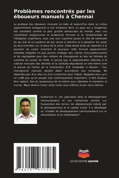 La pratique des éboueurs manuels en Inde vit aujourd'hui dans un milieu apparemment antagoniste à son incidence dans un pays qui a longtemps été considéré comme la plus grande démocratie du monde, avec une constitution progressiste et protectrice formant la loi fondamentale de l'obligation supérieure, avec une cour suprême jouant le rôle de sentinelle du qui vive et un système de lois visant à interdire et à pénaliser les actes de discrimination sur la base de la caste. Cette étude tente de répondre à la question de savoir comment et pourquoi cette formule apparemment infaillible d'égalité n'a pas permis d'alléger des siècles d'assujettissement et de ségrégation pour des millions de charognards au bas de l'échelle du système de castes de l'Inde. Il conclut que la stigmatisation attachée à la collecte manuelle des déchets et la conduite dégradante en elle-même sont la preuve de l'échec de la Constitution. B.R. Ambedkar a déclaré : "Les charognards manuels doivent abolir eux-mêmes leur esclavage. Ne dépendez pas d'un dieu ou d'un surhomme pour l'abolir. Rappelez-vous qu'il ne suffit pas qu'un peuple soit numériquement majoritaire. Il doit toujours être vigilant, fort et respectueux de lui-même pour atteindre et maintenir le succès. Nous devons tracer notre route nous-mêmes et par nous-mêmes.