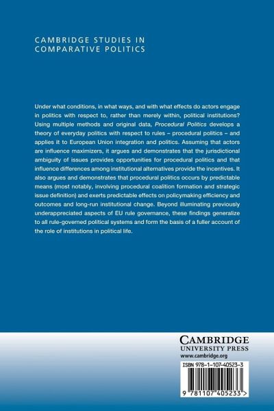 This book was first published in 2004. Under what conditions, in what ways, and with what effects do actors engage in politics with respect to, rather than merely within, political institutions? Using multiple methods and original data, Procedural Politics develops a theory of everyday politics with respect to rules - procedural politics - and applies it to European Union integration and politics. Assuming that actors influence maximizers, it argues and demonstrates that the jurisdiction ambiguity of issues provides opportunities for procedural politics and that influence-differences among institutional alternatives provide the incentives. It also argues and demonstrates that procedural politics occurs by predictable means (most notably, involving procedural coalition formation and strategic issue-definition) and exerts predictable effects on policymaking efficiency and outcomes and long-run institutional change. Beyond illuminating previously under-appreciated aspects of EU rule governance, these findings generalize to all rule-governed political systems and form the basis of fuller accounts of the role of institutions in political life.