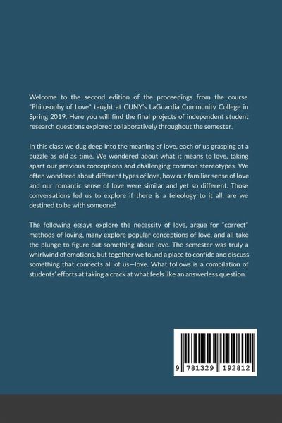Welcome to the second edition of the proceedings from the course "Philosophy of Love'' taught at CUNY's LaGuardia Community College in Spring 2019. Here you will find the final projects of independent student research questions explored collaboratively throughout the semester. The contributors each chose their own topics, presenting it to the class for discussion, revising and reworking throughout the semester with help from their peers and the readings for the course. Well-acquainted with everyone's research, we had a "speed-dating" round to interview the top choices for peer review. Some students chose to work with people who had opposing perspectives, while others choose partners who were more aligned with their viewpoints. All in all we challenged ourselves to pursue wisdom together, appreciating the differences in our ideas with open minds and hearts. Please enjoy the fruits of our curiosity honed by a rigorous dialectical process.
