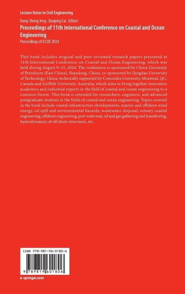 This book includes original and peer-reviewed research papers presented at 11th International Conference on Coastal and Ocean Engineering, which was held during August 9-11, 2024. The conference is sponsored by China University of Petroleum (East China), Shandong, China, co-sponsored by Qingdao University of Technology, China, technically supported by Concordia University, Montreal, QC, Canada and Griffith University, Australia, which aims to bring together innovative academics and industrial experts in the field of coastal and ocean engineering to a common forum. This book is intended for researchers, engineers, and advanced postgraduate students in the fields of coastal and ocean engineering. Topics covered in the book include coastal infrastructure developments, marine and offshore wind energy, oil spill and environmental hazards, wastewater disposal, estuary coastal engineering, offshore engineering, port waterway, oil and gas gathering and transferring, hydrodynamics of off shore structures, etc.