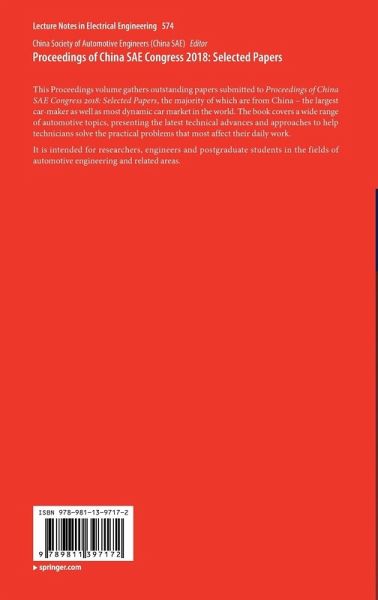 This Proceedings volume gathers outstanding papers submitted to Proceedings of China SAE Congress 2018: Selected Papers , the majority of which are from China - the largest car-maker as well as most dynamic car market in the world. The book covers a wide range of automotive topics, presenting the latest technical advances and approaches to help technicians solve the practical problems that most affect their daily work. It is intended for researchers, engineers and postgraduate students in the fields of automotive engineering and related areas.