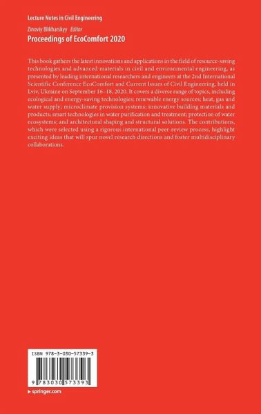 This book gathers the latest innovations and applications in the field of resource-saving technologies and advanced materials in civil and environmental engineering, as presented by leading international researchers and engineers at the 2nd International Scientific Conference EcoComfort and Current Issues of Civil Engineering, held in Lviv, Ukraine on September 16-18, 2020. It covers a diverse range of topics, including ecological and energy-saving technologies; renewable energy sources; heat, gas and water supply; microclimate provision systems; innovative building materials and products;…mehr