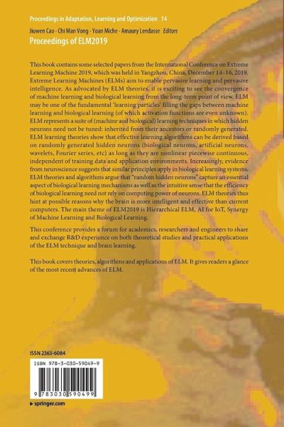 This book contains some selected papers from the International Conference on Extreme Learning Machine 2019, which was held in Yangzhou, China, December 14-16, 2019. Extreme Learning Machines (ELMs) aim to enable pervasive learning and pervasive intelligence. As advocated by ELM theories, it is exciting to see the convergence of machine learning and biological learning from the long-term point of view. ELM may be one of the fundamental 'learning particles' filling the gaps between machine learning and biological learning (of which activation functions are even unknown). ELM represents a suite of (machine and biological) learning techniques in which hidden neurons need not be tuned: inherited from their ancestors or randomly generated. ELM learning theories show that effective learning algorithms can be derived based on randomly generated hidden neurons (biological neurons, artificial neurons, wavelets, Fourier series, etc) as long as they are nonlinear piecewise continuous, independent of training data and application environments. Increasingly, evidence from neuroscience suggests that similar principles apply in biological learning systems. ELM theories and algorithms argue that "random hidden neurons" capture an essential aspect of biological learning mechanisms as well as the intuitive sense that the efficiency of biological learning need not rely on computing power of neurons. ELM theories thus hint at possible reasons why the brain is more intelligent and effective than current computers. The main theme of ELM2019 is Hierarchical ELM, AI for IoT, Synergy of Machine Learning and Biological Learning.