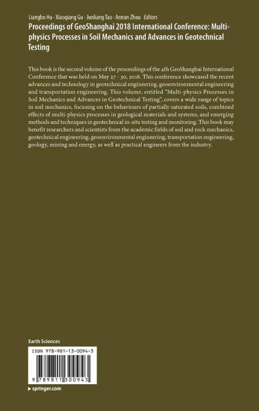 This book is the second volume of the proceedings of the 4th GeoShanghai International Conference that was held on May 27 - 30, 2018. This conference showcased the recent advances and technology in geotechnical engineering, geoenvironmental engineering and transportation engineering. This volume, entitled "Multi-physics Processes in Soil Mechanics and Advances in Geotechnical Testing", covers a wide range of topics in soil mechanics, focusing on the behaviours of partially saturated soils, combined effects of multi-physics processes in geological materials and systems, and emerging methods and techniques in geotechnical in-situ testing and monitoring. This book may benefit researchers and scientists from the academic fields of soil and rock mechanics, geotechnical engineering, geoenvironmental engineering, transportation engineering, geology, mining and energy, as well as practical engineers from the industry.