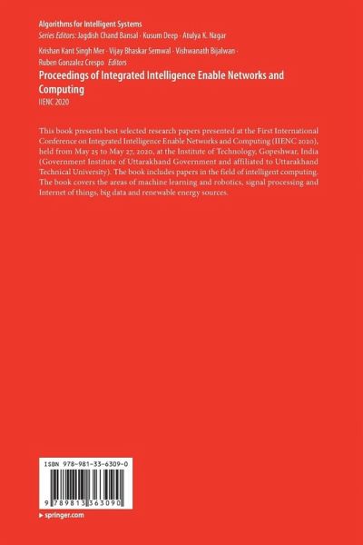 This book presents best selected research papers presented at the First International Conference on Integrated Intelligence Enable Networks and Computing (IIENC 2020), held from May 25 to May 27, 2020, at the Institute of Technology, Gopeshwar, India (Government Institute of Uttarakhand Government and affiliated to Uttarakhand Technical University). The book includes papers in the field of intelligent computing. The book covers the areas of machine learning and robotics, signal processing and Internet of things, big data and renewable energy sources.