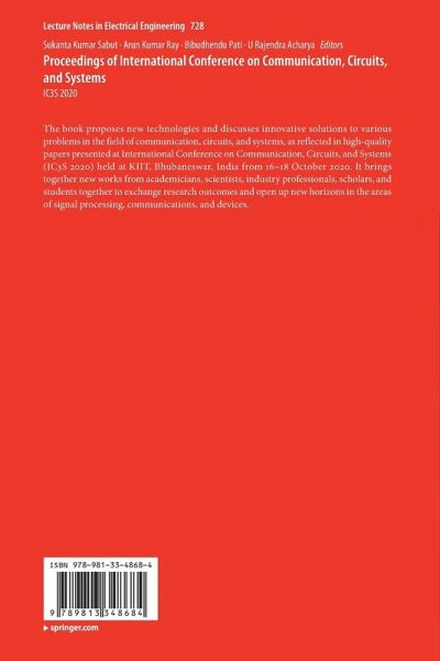 The book proposes new technologies and discusses innovative solutions to various problems in the field of communication, circuits, and systems, as reflected in high-quality papers presented at International Conference on Communication, Circuits, and Systems (IC3S 2020) held at KIIT, Bhubaneswar, India from 16 - 18 October 2020. It brings together new works from academicians, scientists, industry professionals, scholars, and students together to exchange research outcomes and open up new horizons in the areas of signal processing, communications, and devices.