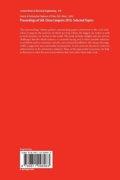 This proceedings volume gathers outstanding papers submitted to the 2016 SAE-China Congress, the majority of which are from China, the biggest car maker as well as most dynamic car market in the world. The book includes insights into the current challenges that the whole industry is currently facing, and it offers possible solutions to problems such as emission controls, environmental pollution, the energy shortage, traffic congestion and sustainable development. It also presents the latest technical achievements in the automotive industry. Many of the approaches it presents can help technicians to solve the practical problems that most affect their daily work.