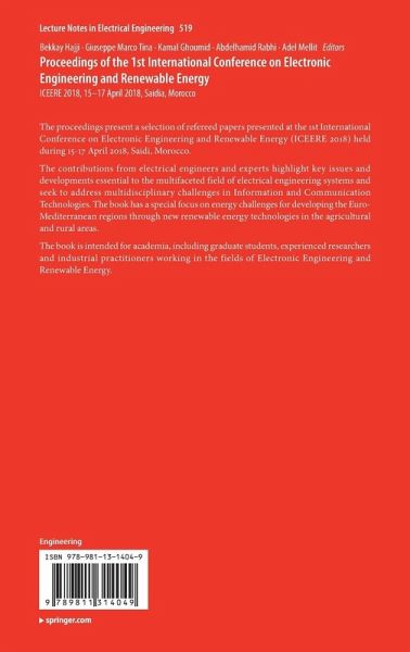 The proceedings present a selection of refereed papers presented at the 1st International Conference on Electronic Engineering and Renewable Energy (ICEERE 2018) held during 15-17 April 2018, Saidi, Morocco. The contributions from electrical engineers and experts highlight key issues and developments essential to the multifaceted field of electrical engineering systems and seek to address multidisciplinary challenges in Information and Communication Technologies. The book has a special focus on energy challenges for developing the Euro-Mediterranean regions through new renewable energy…mehr