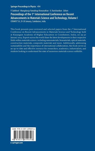 This book presents peer-reviewed and selected papers from the 1st International Conference on Recent Advancements in Materials Science and Technology held at Karpagam Academy of Higher Education in Coimbatore, India, on 29-30 January 2024. Experts across the world share the latest developments in their respective fields within materials science, including nanomaterials, biomaterials, optical materials, construction materials, composite materials and more. Additionally, addressing sustainability and the importance of international collaboration, this book serves as an up-to-date and effective resource for researchers, academics, industrialists, and students looking to understand the state of numerous materials science subfields.