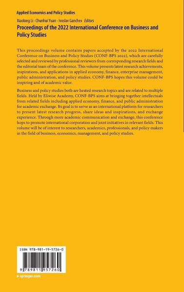 This proceedings volume contains papers accepted by the 2022 International Conference on Business and Policy Studies (CONF-BPS 2022), which are carefully selected and reviewed by professional reviewers from corresponding research fields and the editorial team of the conference. This volume presents latest research achievements, inspirations, and applications in applied economy, finance, enterprise management, public administration, and policy studies. CONF-BPS hopes this volume could be inspiring and of academic value.Business and policy studies both are heated research topics and are related to multiple fields. Held by Eliwise Academy, CONF-BPS aims at bringing together intellectuals from related fields including applied economy, finance, and public administration for academic exchange. Its goal is to serve as an international platform for researchers to present latest research progress, share ideas and inspirations, and exchange experience. Through more academic communication and exchange, this conference hops to promote international corporation and joint initiatives in relevant fields. This volume will be of interest to researchers, academics, professionals, and policy makers in the field of business, economics, management, and policy studies.