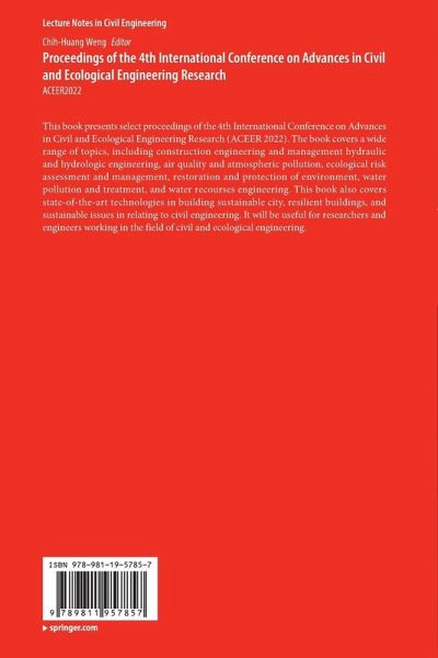 This book presents select proceedings of the 4th International Conference on Advances in Civil and Ecological Engineering Research (ACEER 2022). The book covers a wide range of topics, including construction engineering and management hydraulic and hydrologic engineering, air quality and atmospheric pollution, ecological risk assessment and management, restoration and protection of environment, water pollution and treatment, and water recourses engineering. This book also covers state-of-the-art technologies in building sustainable city, resilient buildings, and sustainable issues in relating to civil engineering. It will be useful for researchers and engineers working in the field of civil and ecological engineering.