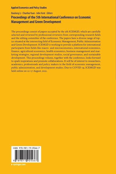 The proceedings consist of papers accepted by the 5th ICEMGD, which are carefully selected and reviewed by professional reviewers from corresponding research fields and the editing committee of the conference. The papers have a diverse range of topics situated at the intersecting field of Economic Management, Public Administration and Green Development. ICEMGD is working to provide a platform for international participants from fields like macro- and microeconomics, international economics, finance, agricultural economics, health economics, business management and marketing strategies, regional development studies, social governance, and sustainable development. This proceedings volume, together with the conference, looks forward to spark inspirations and promote collaborations. It will be of interest to researchers, academics, professionals and policy makers in the field of economic management, public administration, and development studies. Due to COVID-19, ICEMGD was held online on 12-17 August, 2021.