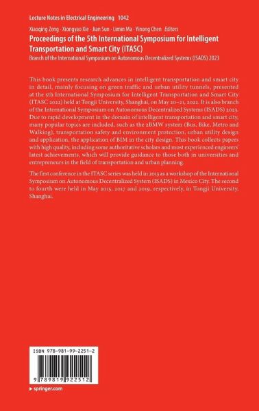 This book presents research advances in intelligent transportation and smart city in detail, mainly focusing on green traffic and urban utility tunnels, presented at the 5th International Symposium for Intelligent Transportation and Smart City (ITASC 2022) held at Tongji University, Shanghai, on May 20-21, 2022. It is also branch of the International Symposium on Autonomous Decentralized Systems (ISADS) 2023. Due to rapid development in the domain of intelligent transportation and smart city, many popular topics are included, such as the 2BMW system (Bus, Bike, Metro and Walking), transportation safety and environment protection, urban utility design and application, the application of BIM in the city design. This book collects papers with high quality, including some authoritative scholars and most experienced engineers' latest achievements, which will provide guidance to those both in universities and entrepreneurs in the field of transportation and urban planning.
