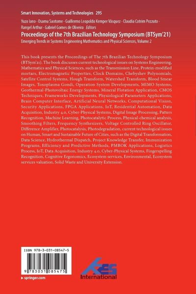 This book presents the Proceedings of The 7th Brazilian Technology Symposium (BTSym'21). The book discusses current technological issues on Systems Engineering, Mathematics and Physical Sciences, such as the Transmission Line, Protein-modified mortars, Electromagnetic Properties, Clock Domains, Chebyshev Polynomials, Satellite Control Systems, Hough Transform, Watershed Transform, Blood Smear Images, Toxoplasma Gondi, Operation System Developments, MIMO Systems, Geothermal-Photovoltaic Energy Systems, Mineral Flotation Application, CMOS Techniques, Frameworks Developments, Physiological Parameters Applications, Brain Computer Interface, Artificial Neural Networks, Computational Vision, Security Applications, FPGA Applications, IoT, Residential Automation, Data Acquisition, Industry 4.0, Cyber-Physical Systems, Digital Image Processing, Patters Recognition, Machine Learning, Photocatalytic Process, Physical-chemical analysis, Smoothing Filters, Frequency Synthesizers, Voltage ControlledRing Oscillator, Difference Amplifier, Photocatalysis, Photodegradation, current technological issues on Human, Smart and Sustainable Future of Cities, such as the Digital Transformation, Data Science, Hydrothermal Dispatch, Project Knowledge Transfer, Immunization Programs, Efficiency and Predictive Methods, PMBOK Applications, Logistics Process, IoT, Data Acquisition, Industry 4.0, Cyber-Physical Systems, Fingerspelling Recognition, Cognitive Ergonomics, Ecosystem services, Environmental, Ecosystem services valuation, Solid Waste and University Extension.