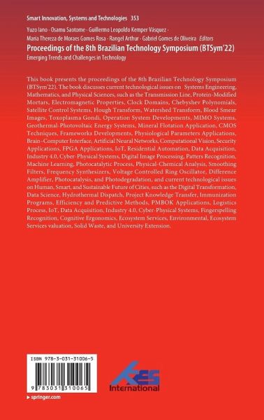 This book presents the proceedings of the 8th Brazilian Technology Symposium (BTSym'22). The book discusses current technological issues on Systems Engineering, Mathematics, and Physical Sciences, such as the Transmission Line, Protein-Modified Mortars, Electromagnetic Properties, Clock Domains, Chebyshev Polynomials, Satellite Control Systems, Hough Transform, Watershed Transform, Blood Smear Images, Toxoplasma Gondi, Operation System Developments, MIMO Systems, Geothermal-Photovoltaic Energy Systems, Mineral Flotation Application, CMOS Techniques, Frameworks Developments, Physiological Parameters Applications, Brain-Computer Interface, Artificial Neural Networks, Computational Vision, Security Applications, FPGA Applications, IoT, Residential Automation, Data Acquisition, Industry 4.0, Cyber-Physical Systems, Digital Image Processing, Patters Recognition, Machine Learning, Photocatalytic Process, Physical-Chemical Analysis, Smoothing Filters, Frequency Synthesizers, VoltageControlled Ring Oscillator, Difference Amplifier, Photocatalysis, and Photodegradation, and current technological issues on Human, Smart, and Sustainable Future of Cities, such as the Digital Transformation, Data Science, Hydrothermal Dispatch, Project Knowledge Transfer, Immunization Programs, Efficiency and Predictive Methods, PMBOK Applications, Logistics Process, IoT, Data Acquisition, Industry 4.0, Cyber-Physical Systems, Fingerspelling Recognition, Cognitive Ergonomics, Ecosystem Services, Environmental, Ecosystem Services valuation, Solid Waste, and University Extension.