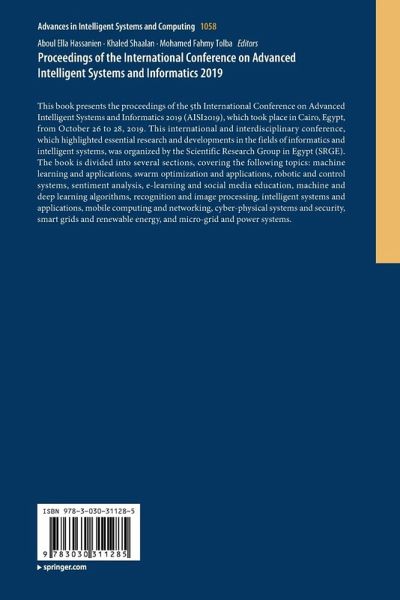 This book presents the proceedings of the 5th International Conference on Advanced Intelligent Systems and Informatics 2019 (AISI2019), which took place in Cairo, Egypt, from October 26 to 28, 2019. This international and interdisciplinary conference, which highlighted essential research and developments in the fields of informatics and intelligent systems, was organized by the Scientific Research Group in Egypt (SRGE). The book is divided into several sections, covering the following topics: machine learning and applications, swarm optimization and applications, robotic and control systems, sentiment analysis, e-learning and social media education, machine and deep learning algorithms, recognition and image processing, intelligent systems and applications, mobile computing and networking, cyber-physical systems and security, smart grids and renewable energy, and micro-grid and power systems.