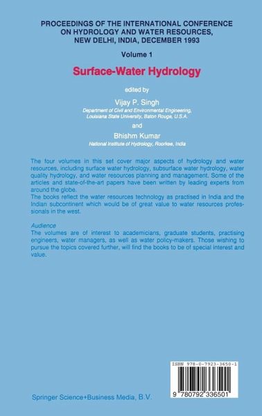 The four volumes in this set cover major aspects of hydrology and water resources, including surface water hydrology, subsurface water hydrology, water quality hydrology, and water resources planning management. Some of the articles and state-of-the-art papers have been written by leading experts from around the globe. The books reflect the water resources technology as practised in India and the Indian subcontinent which would be of great value to water resources professionals in the west. The books are of interest to academicians, graduate students, practising engineers, water engineers, as well as water policy makers. Those wishing to further pursue the topics covered will find the books to be of special interest and value.