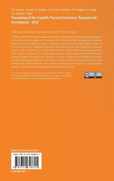 This open access book relates to the III Annual Conference hosted by The Ministry of Education and Science of the Russian Federation in December 2016. This event has summarized, analyzed and discussed the interim results, academic outputs and scientific achievements of the Russian Federal Targeted Programme "Research and Development in Priority Areas of Development of the Russian Scientific and Technological Complex for 2014-2020." It contains 75 selected papers from 6 areas considered priority by the Federal Targeted Programme: computer science, ecology & environment sciences; energy and energy efficiency; lifesciences; nanoscience & nanotechnology and transport & communications. The chapters report the results of the 3-years research projects supported by the Programme and finalized in 2016.