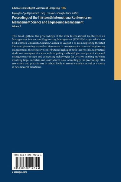 This book gathers the proceedings of the 13th International Conference on Management Science and Engineering Management (ICMSEM 2019), which was held at Brock University, Ontario, Canada on August 5-8, 2019. Exploring the latest ideas and pioneering research achievements in management science and engineering management, the respective contributions highlight both theoretical and practical studies on management science and computing methodologies, and present advanced management concepts and computing technologies for decision-making problems involving large, uncertain and unstructured data. Accordingly, the proceedings offer researchers and practitioners in related fields an essential update, as well as a source of new research directions.