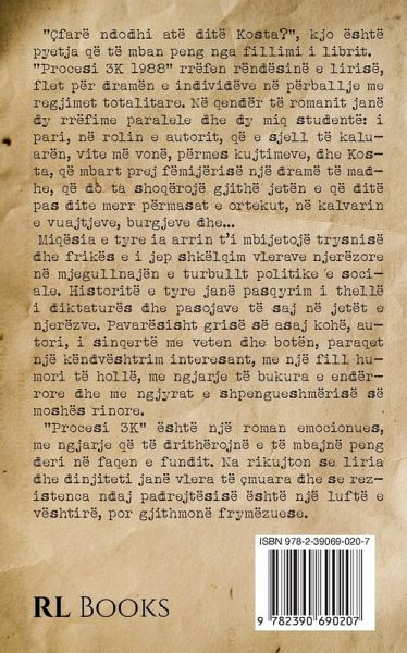 "Procesi 3K 1988" rrëfen rëndësinë e lirisë përballë regjimit totalitar. Dy rrëfime paralele, dy miq studentë autori dhe Kosta. Një dramë të madhe, që merr përmasat e ortekut, në kalvarin e vuajtjeve, burgjeve dhe...