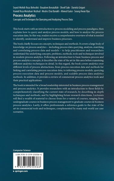 This book starts with an introduction to process modeling and process paradigms, then explains how to query and analyze process models, and how to analyze the process execution data. In this way, readers receive a comprehensive overview of what is needed to identify, understand and improve business processes.
