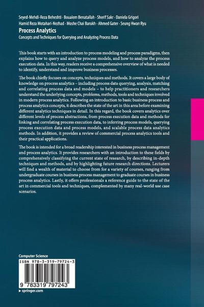 This book starts with an introduction to process modeling and process paradigms, then explains how to query and analyze process models, and how to analyze the process execution data. In this way, readers receive a comprehensive overview of what is needed to identify, understand and improve business processes.