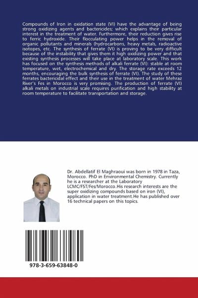 Compounds of Iron in oxidation state (VI) have the advantage of being strong oxidizing agents and bactericides; which explains their particular interest in the treatment of water. Furthermore, their reduction gives rise to ferric hydroxide. Their flocculating power helps in the removal of organic pollutants and minerals (hydrocarbons, heavy metals, radioactive isotopes, etc. The synthesis of ferrate (VI) is proving to be very difficult because of the instability that gives them it high oxidizing power and that existing synthesis processes will take place at laboratory scale. This work has…mehr