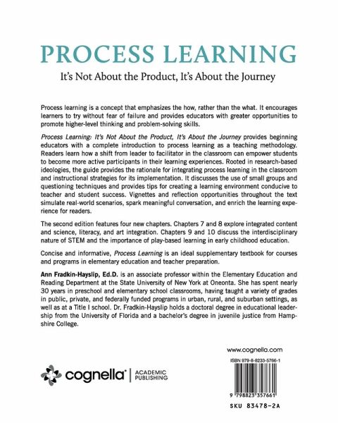 Process learning is a concept that emphasizes the how, rather than the what. It encourages learners to try without fear of failure and provides educators with greater opportunities to promote higher-level thinking and problem-solving skills. Process Learning: It's Not About the Product, It's About the Journey provides beginning educators with a complete introduction to process learning as a teaching methodology. Readers learn how a shift from leader to facilitator in the classroom can empower students to become more active participants in their learning experiences. Rooted in research-based ideologies, the guide provides the rationale for integrating process learning in the classroom and instructional strategies for its implementation. It discusses the use of small groups and questioning techniques and provides tips for creating a learning environment conducive to teacher and student success. Vignettes and reflection opportunities throughout the text simulate real-world scenarios, spark meaningful conversation, and enrich the learning experience for readers. The second edition features four new chapters. Chapters 7 and 8 explore integrated content and science, literacy, and art integration. Chapters 9 and 10 discuss the interdisciplinary nature of STEM and the importance of play-based learning in early childhood education. Concise and informative, Process Learning is an ideal supplementary textbook for courses and programs in elementary education and teacher preparation.