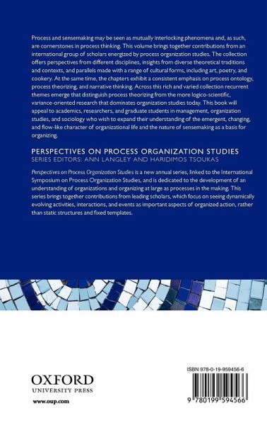 Process, Sensemaking, and Organizing is the first in a series of volumes which explore perspectives on process theories, an emerging approach to the study of organizations that focuses on (understanding) activities, interactions, and change as essential properties of organizations rather than structures and state - an approach which prioritizes activity over product, change over persistence, novelty over continuity, and expression over determination. Process and sensemaking may be seen as mutually interlocking phenomena and, as such, are cornerstones in process thinking, This volume brings together contributions from an international group of scholars energized by process organization studies. The collection offers perspectives from different disciplines, insights from diverse theoretical traditions and contexts, and parallels made with a range of cultural forms, including art, poetry, and cookery. At the same time, the chapters exhibit a clear emphasis on a process ontology, process theorizing, and narrative thinking. Across this rich and varied collection recurrent themes emerge that distinguish process theorizing from the more logico-scientific, variance-oriented research that dominates organization studies today. This book will appeal to academics, researchers, and graduate students in management, organization studies, and sociology who wish to better understand the emergent, changing, and flow-like character of organizational life and expand their understanding of the nature of sensemaking as a basis for organizing.