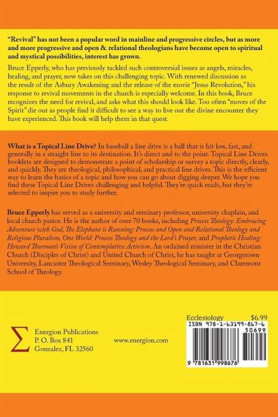 "Revival" has not been a popular word in mainline and progressive circles, but as more and more progressive and open & relational theologians have become open to spiritual and mystical possibilities, interest has grown. Bruce Epperly, who has previously tackled such controversial issues as angels, miracles, healing, and prayer, now takes on this challenging topic. With renewed discussion as the result of the Asbury Awakening and the release of the movie "Jesus Revolution," his response to revival movements in the church is especially welcome. Bruce has long been a prominent proponent of process theology for every church member, explaining some of the more difficult concepts in relatable terms for the people in the pews. In this book, he recognizes the need for revival, and asks what this should look like. Too often "moves of the Spirit" die out as people find it difficult to see a way to live out the divine encounter they have experienced. This book is addressed both to those hungry for more and to those who have felt the presence of the Divine in various ways and are asking how they can understand and live in the light of that they have experienced.