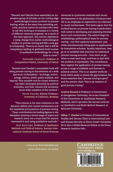 Advances in qualitative methods and recent developments in the philosophy of science have led to an emphasis on explanation via reference to causal mechanisms. This book argues that the method known as process tracing is particularly well suited to developing and assessing theories about such mechanisms. The editors begin by establishing a philosophical basis for process tracing - one that captures mainstream uses while simultaneously being open to applications by interpretive scholars. Equally important, they go on to establish best practices for individual process-tracing accounts - how micro to go, when to start (and stop), and how to deal with the problem of equifinality. The contributors then explore the application of process tracing across a range of subfields and theories in political science. This is an applied methods book which seeks to shrink the gap between the broad assertion that 'process tracing is good' and the precise claim 'this is an instance of good process tracing'.