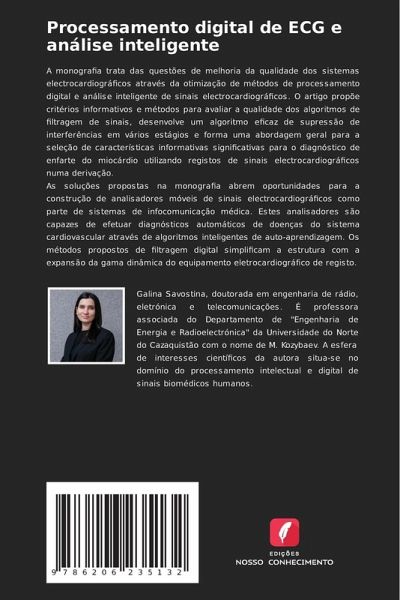 A monografia trata das questões de melhoria da qualidade dos sistemas electrocardiográficos através da otimização de métodos de processamento digital e análise inteligente de sinais electrocardiográficos. O artigo propõe critérios informativos e métodos para avaliar a qualidade dos algoritmos de filtragem de sinais, desenvolve um algoritmo eficaz de supressão de interferências em vários estágios e forma uma abordagem geral para a seleção de características informativas significativas para o diagnóstico de enfarte do miocárdio utilizando registos de sinais electrocardiográficos numa derivação.As soluções propostas na monografia abrem oportunidades para a construção de analisadores móveis de sinais electrocardiográficos como parte de sistemas de infocomunicação médica. Estes analisadores são capazes de efetuar diagnósticos automáticos de doenças do sistema cardiovascular através de algoritmos inteligentes de auto-aprendizagem. Os métodos propostos de filtragem digital simplificam a estrutura com a expansão da gama dinâmica do equipamento eletrocardiográfico de registo.