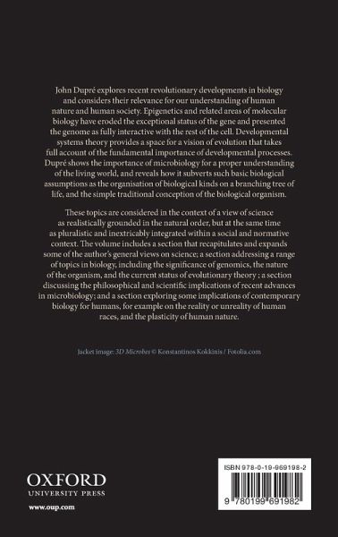John Dupré explores recent revolutionary developments in biology and considers their relevance for our understanding of human nature and human society. Epigenetics and related areas of molecular biology have eroded the exceptional status of the gene and presented the genome as fully interactive with the rest of the cell. Developmental systems theory provides a space for a vision of evolution that takes full account of the fundamental importance of developmental processes. Dupré shows the importance of microbiology for a proper understanding of the living world, and reveals how it subverts such basic biological assumptions as the organisation of biological kinds on a branching tree of life, and the simple traditional conception of the biological organism. These topics are considered in the context of a view of science as realistically grounded in the natural order, but at the same time as pluralistic and inextricably integrated within a social and normative context. The volume includes a section that recapitulates and expands some of the author's general views on science; a section addressing a range of topics in biology, including the significance of genomics, the nature of the organism and the current status of evolutionary theory; and a section exploring some implications of contemporary biology for humans, for example on the reality or unreality of human races, and the plasticity of human nature.