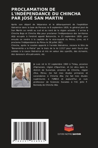 Après son départ de Valparaiso et le débarquement de l'expédition libératrice dans la baie de Paracas le 8 septembre 1820, le général José de San Martín se rendit au sud et au nord de la région actuelle ; il arriva à Chincha Baja et Chincha Alta pour proclamer l'indépendance des territoires déjà occupés à l'endroit appelé Balconcito, le 23 septembre 1820, pour ensuite se rendre à la capitale de la vice-royauté du Pérou, Lima, où il proclama l'indépendance du Pérou le 28 juillet 1821.Chincha, après le soutien apporté à l'armée libératrice, recevra le titre de "Benemérita a la Patria" par le biais de la loi 11517 pour avoir fourni des soldats à la cause libératrice et mis en valeur des sportifs, des écrivains, des danseurs afro-péruviens, etc.