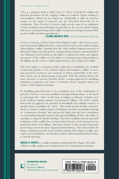 Part I: Genocidal Underpinnings and Genesis of Northern Nigeria Ethno-Religious Conflict Chapter 1: Historical Background to Northern Nigeria Ethno-Religious Conflict Northern Chapter 2: Understanding the Conceptual Framework of Genocide Chapter 3: Theoretical Framework of Nigeria's Ethno-Religious Conflict Part II: Identifying the Proclivity to Genocide Chapter 4: Presenting the Model for Proclivity to Genocide Chapter 5: Proclivity to Genocide in Northern Nigeria Phase I: 1966 to 1976 Chapter 6: Proclivity to Genocide in Northern Nigeria Phase II: 1976 to 1987 Chapter 7: Proclivity to Genocide in Northern Nigeria Phase III: 1987 to 1996 Chapter 8: Proclivity to Genocide in Northern Nigeria Phase IV: 1996 to 2005 Chapter 9: Proclivity to Genocide in Northern Nigeria Phase V: 2006 to Present Chapter 10: Bases of Proclivity to Genocide in Northern Nigeria Chapter 11: Religious Underpinnings in Nigeria's Ethno-Religious Conflict Part III: Resolution Considerations Chapter 12: Challenges, Prospects, and Prescriptive Recommendations