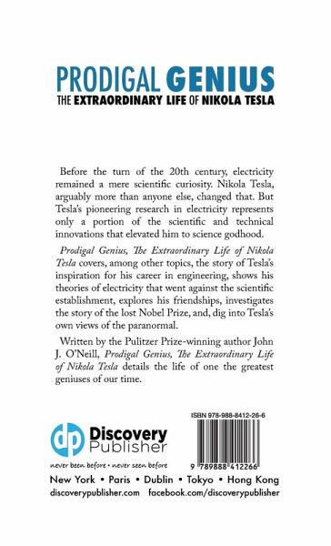Before the turn of the 20th century, electricity remained a mere scientific curiosity. Nikola Tesla, arguably more than anyone else, changed that. But Tesla's pioneering research in electricity represents only a portion of the scientific and technical innovations that elevated him to science godhood. Prodigal Genius, The Extraordinary Life of Nikola Tesla covers, among other topics, the story of Tesla's inspiration for his career in engineering, shows his theories of electricity that went against the scientific establishment, explores his friendships, investigates the story of the lost Nobel Prize, and, dig into Tesla's own views of the paranormal. Written by the Pulitzer Prize-winning author John J. O'Neill, Prodigal Genius, The Extraordinary Life of Nikola Tesla details the life of one the greatest geniuses of our time.