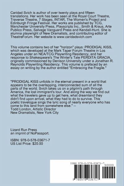 Two 'horizon' plays by US Latina dramatist Caridad Svich: PRODIGAL KISS and PERDITA GRACIA, inspired by Federico Garcia Lorca's Poet in New York and Shakespeare's The Winter's Tale, respectively. Dynamic, lyrical dramas for a new audience.