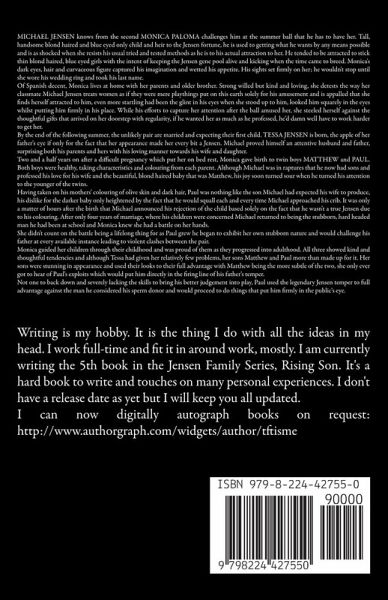 MICHAEL JENSEN knows from the second MONICA PALOMA challenges him at the summer ball that he has to have her. Tall, handsome blond haired and blue eyed only child and heir to the Jensen fortune, he is used to getting what he wants by any means possible and is as shocked when she resists his usual tried and tested methods as he is to his actual attraction to her. He tended to be attracted to stick thin blond haired, blue eyed girls with the intent of keeping the Jensen gene pool alive and kicking when the time came to breed. Monica's dark eyes, hair and curvaceous figure captured his imagination and wetted his appetite. His sights set firmly on her; he wouldn't stop until she wore his wedding ring and took his last name. Of Spanish decent, Monica lives at home with her parents and older brother. Strong willed but kind and loving, she detests the way her classmate Michael Jensen treats women as if they were mere playthings put on this earth solely for his amusement and is appalled that she finds herself attracted to him, even more startling had been the glint in his eyes when she stood up to him, looked him squarely in the eyes whilst putting him firmly in his place. While his efforts to capture her attention after the ball amused her, she steeled herself against the thoughtful gifts that arrived on her doorstep with regularity, if he wanted her as much as he professed, he'd damn well have to work harder to get her. By the end of the following summer, the unlikely pair are married and expecting their first child. TESSA JENSEN is born, the apple of her father's eye if only for the fact that her appearance made her every bit a Jensen. Michael proved himself an attentive husband and father, surprising both his parents and hers with his loving manner towards his wife and daughter. Two and a half years on after a difficult pregnancy which put her on bed rest, Monica gave birth to twin boys MATTHEW and PAUL. Both boys were healthy, taking characteristics and colouring from each parent. Although Michael was in raptures that he now had sons and professed his love for his wife and the beautiful, blond haired baby that was Matthew, his joy soon turned sour when he turned his attention to the younger of the twins. Having taken on his mothers' colouring of olive skin and dark hair, Paul was nothing like the son Michael had expected his wife to produce, his dislike for the darker baby only heightened by the fact that he would squall each and every time Michael approached his crib. It was only a matter of hours after the birth that Michael announced his rejection of the child based solely on the fact that he wasn't a true Jensen due to his colouring. After only four years of marriage, where his children were concerned Michael returned to being the stubborn, hard headed man he had been at school and Monica knew she had a battle on her hands. She didn't count on the battle being a lifelong thing for as Paul grew he began to exhibit her own stubborn nature and would challenge his father at every available instance leading to violent clashes between the pair. Monica guided her children through their childhood and was proud of them as they progressed into adulthood. All three showed kind and thoughtful tendencies and although Tessa had given her relatively few problems, her sons Matthew and Paul more than made up for it. Her sons were stunning in appearance and used their looks to their full advantage with Matthew being the more subtle of the two, she only ever got to hear of Paul's exploits which would put him directly in the firing line of his father's temper. Not one to back down and severely lacking the skills to bring his better judgement into play, Paul used the legendary Jensen temper to full advantage against the man he considered his sperm donor and would proceed to do things that put him firmly in the public's eye.