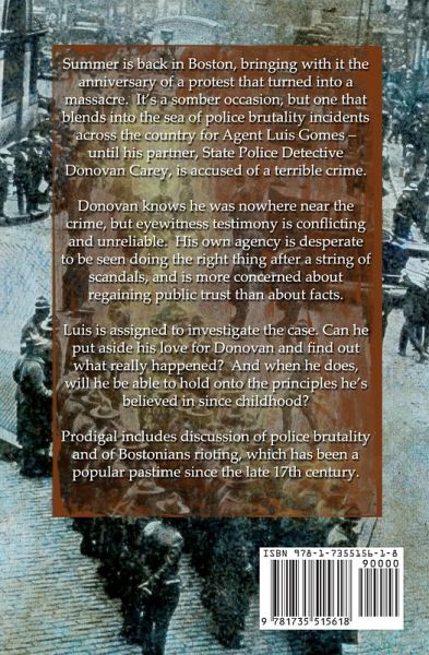 Summer is back in Boston, bringing with it the anniversary of a protest that turned into a massacre. It's a somber occasion, but one that blends into the sea of police brutality incidents across the country for Agent Luis Gomes - until his partner, State Police Detective Donovan Carey, is accused of a terrible crime. Donovan knows he was nowhere near the crime, but eyewitness testimony is conflicting and unreliable. His own agency is desperate to be seen doing the right thing after a string of scandals and is more concerned about regaining public trust than about facts. Luis is assigned to investigate the case. Can he put aside his love for Donovan and find out what really happened? And when he does, will he be able to hold onto the principles he's believed in since childhood? Prodigal includes discussion of police brutality and of Bostonians rioting, which has been a popular pastime since the late 17th century.