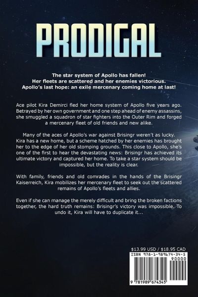 The star system of Apollo has fallen! Her fleets are scattered and her enemies victorious. Apollo's last hope: an exile mercenary coming home at last! Ace pilot Kira Demirci fled her home system of Apollo five years ago. Betrayed by her own government and one step ahead of enemy assassins, she smuggled a squadron of star fighters into the Outer Rim and forged a mercenary fleet of old friends and new alike. Many of the aces of Apollo's war against Brisingr weren't as lucky. Kira has a new home, but a scheme hatched by her enemies has brought her to the edge of her old stomping grounds. This close to Apollo, she's one of the first to hear the devastating news: Brisingr has achieved its ultimate victory and captured her home. To take a star system should be impossible, but the reality is clear. With family, friends and old comrades in the hands of the Brisingr Kaiserreich, Kira mobilizes her mercenary fleet to seek out the scattered remains of Apollo's fleets and allies. Even if she can manage the merely difficult and bring the broken factions together, the hard truth remains: Brisingr's victory was impossible. To undo it, Kira will have to duplicate it...