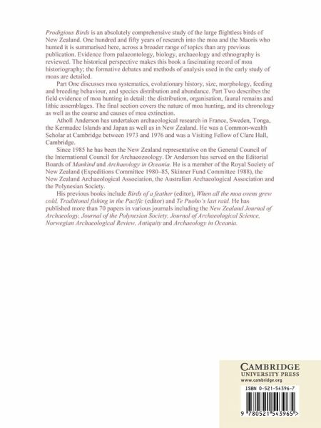Prodigious Birds brings together the entire field of moa-related research, some 150 years of enquiry. The moa was a large flightless bird, hunted into extinction by the Maori tribes of New Zealand before the arrival of Europeans. Atholl Anderson brings an historical perspective to the development of moa research and its formative debates, analytical methods and results, reviewing evidence from palaeontology, biology, archaeology, ethnography and history.