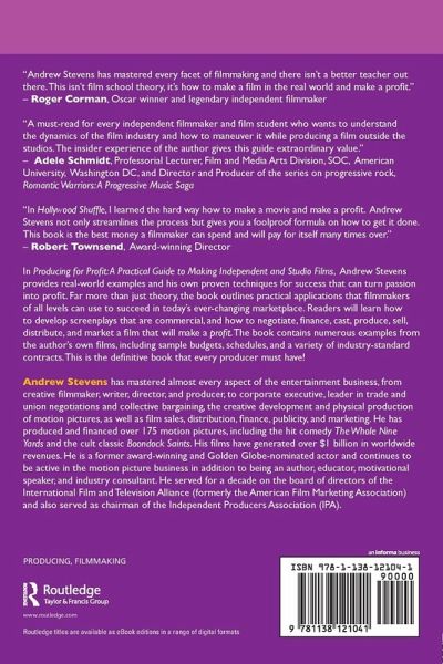In Producing for Profit: A Practical Guide to Making Independent and Studio Films, Andrew Stevens provides real-world examples and his own proven techniques for success that can turn passion into profit. Far more than just theory, the book outlines practical applications that filmmakers of all levels can use to succeed in today's ever-changing marketplace. Readers will learn how to develop screenplays that are commercial, and how to negotiate, finance, cast, produce, sell, distribute, and market a film that will make a profit. The book contains numerous examples from the author's own films, including sample budgets, schedules, and a variety of industry-standard contracts. This is the definitive book that every producer must have!
