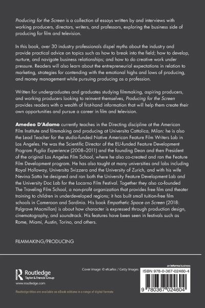Producing for the Screen is a collection of essays written by and interviews with working producers, directors, writers, and professors, exploring the business side of producing for film and television. In this book, over 30 industry professionals dispel myths about the industry and provide practical advice on topics such as how to break into the field; how to develop, nurture, and navigate business relationships; and how to do creative work under pressure. Readers will also learn about the entrepreneurial expectations in relation to marketing, strategies for contending with the emotional highs and lows of producing, and money management while pursuing producing as a profession. Written for undergraduates and graduates studying filmmaking, aspiring producers, and working producers looking to reinvent themselves, Producing for the Screen provides readers with a wealth of first-hand information that will help them create their own opportunities and pursue a career in film and television.