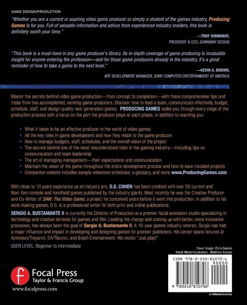"Whether you are a current or aspiring video game Producer or simply a student of the games industry, Producing Games is for you. Full of valuable information and advice from experienced industry insiders, this book is definitely worth your time."--Troy Dunniway, President & CCO, Dunniway Design