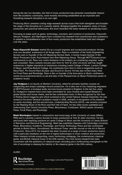 During the last two decades, the field of music production has attracted considerable interest from the academic community, more recently becoming established as an important and flourishing research discipline in its own right. Producing Music presents cutting-edge research across topics that both strengthen and broaden the range of the discipline as it currently stands. Bringing together the academic study of music production and practical techniques, this book illustrates the latest research on producing music. Focusing on areas such as genre, technology, concepts, and contexts of production, Hepworth-Sawyer, Hodgson, and Marrington have compiled key research from practitioners and academics to present a comprehensive view of how music production has established itself and changed over the years.