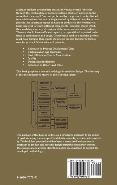 Modular products are products that fulfill various overall functions through the combination of distinct building blocks or modules, in the sense that the overall function performed by the product can be divided into sub-functions that can be implemented by different modules or components. An important aspect of modular products is the creation of a basic core unit to which different components (modules) can be fitted, thus enabling a variety of versions of the same module to be produced. The core should have sufficient capacity to cope with all expected variations in performance and usage. Components used in a modular product must have features that enable them to be coupled together to form a complex product. Modularity will promote: reduction in product development time; customization and upgrades; cost efficiencies due to amortization; quality design standardization; and reduction in order lead time. The purpose of this book is to develop a structured approach to the design of products using the concept of modularity, assembly, and manufacturability. The book has proposed and developed a structured and systematic approach to product and systems design using the modularity concept. Mathematical and genetic algorithm models are developed to support the developed methodology.