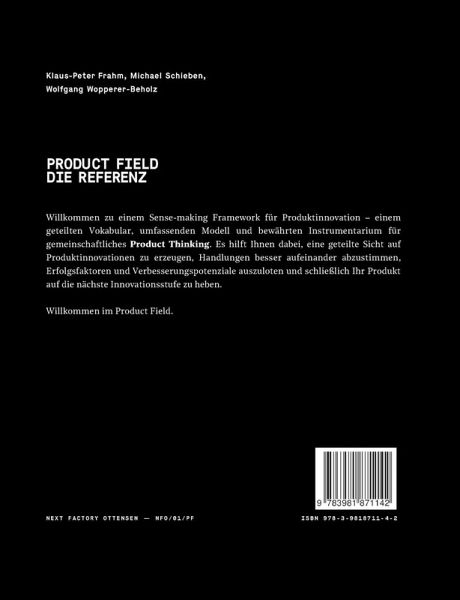 Das Product Field ist ein Sense-making Framework für Produktinnovation - ein geteiltes Vokabular, umfassendes Modell und bewährtes Instrumentarium für gemeinschaftliches Product Thinking. Es hilft Ihnen dabei, in Ihrer Organisation eine geteilte Sicht auf Produktinnovationen zu herzustellen, das Handeln aller Beteiligten besser aufeinander abzustimmen, Erfolgsfaktoren und Verbesserungspotenziale auszuloten und schließlich Ihre Organisation auf die nächste Innovationsstufe zu heben.Mit "Product Field - Die Referenz" liefern die Entwickler des Product Field wertvolle Ratschläge und Anleitungen für ambitionierte Produktleute: Zum einen dokumentiert sie umfassend das Product Field und seine Nutzung, zum anderen vermittelt sie eine neue und produktive Perspektive auf Wesen und Wirkung von Produktinnovation.Eine Pflichtlektüre für alle, die in einer komplexen Welt gemeinsam erfolgreiche Produkte entwickeln möchten.