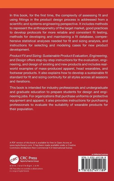 In this book, for the first time, the complexity of assessing fit and using fittings in the product design process is addressed from a scientific and systems engineering perspective. It includes methods to represent the anthropometry of the target market, good practices to develop protocols for more reliable and consistent fit testing, methods for developing and maintaining a fit database, comprehensive statistical analyses needed for fit and sizing analysis, and instructions for selecting and modeling cases for new product development.