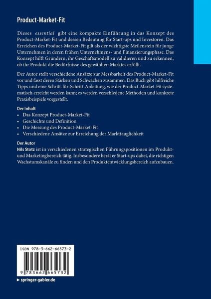 Dieses essential gibt eine kompakte Einführung in das Konzept des Product-Market-Fit und dessen Bedeutung für Start-ups und Investoren. Das Erreichen des Product-Market-Fit gilt als der wichtigste Meilenstein für junge Unternehmen in deren frühen Unternehmens- und Finanzierungsphase. Das Konzept hilft Gründern, ihr Geschäftsmodell zu validieren und zu erkennen, ob ihr Produkt die Bedürfnisse des gewählten Marktes erfüllt.